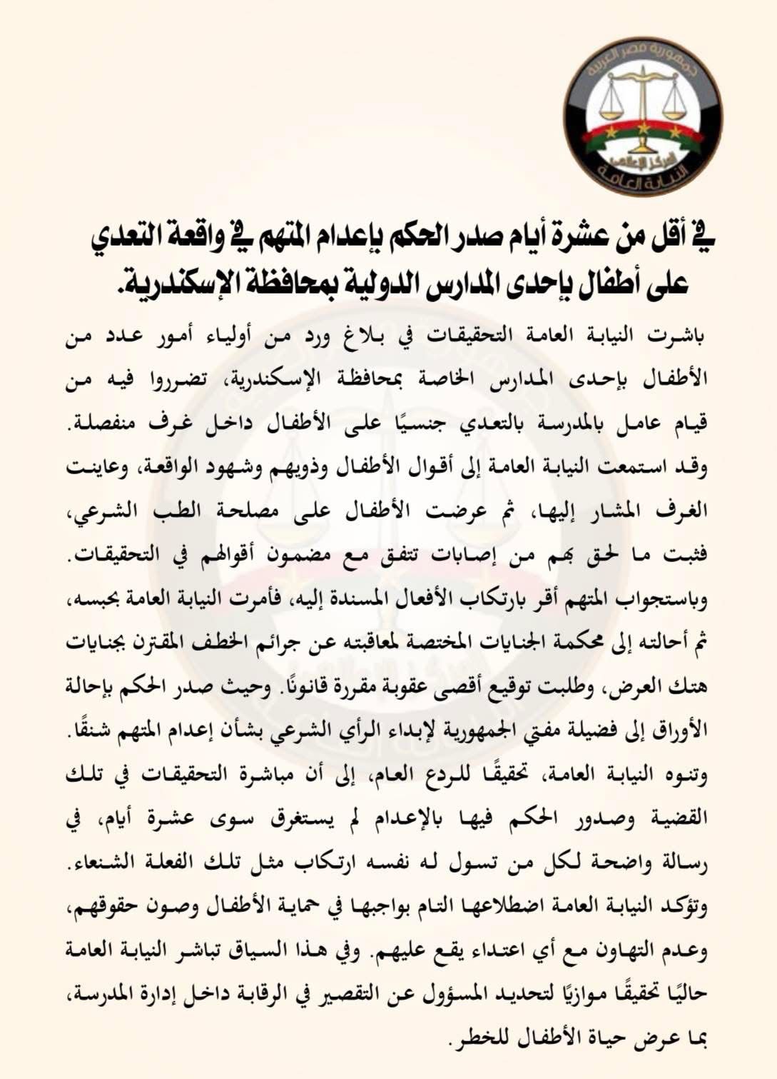 وذلك بعد ان تسلمت محكمة جنايات الجيزة، رأى مفتى الجمهورية في إعدامه، لإتهامه في يوم 25 /5 /2022 بدائرة قسم ثان الشيخ زايد بمحافظة الجيزة بإزهاق حياة 5 أشخاص من أسرة واحدة في مزرعة بالشيخ زايد في القضية المعروفة إعلاميا بـ"مذبحة الريف الأوروبي".