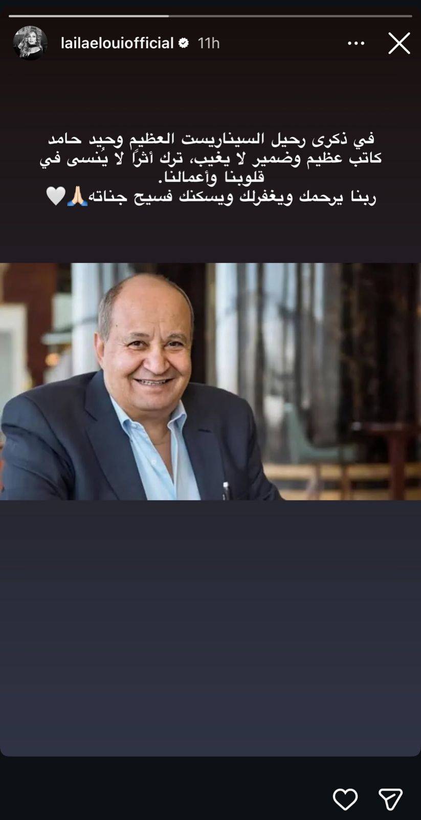"يعجز اللسان عن التعبير عن الحزن اللي جوايا.. كانت إنسانة وفنانة من الزمن الجميل، من أقرب الناس ليا أثناء تصوير مسلسل سكر زيادة في لبنان، عشنا مع بعض ظروف صعبة، ولمست فيها إنسانة نادرة الإحساس والالتزام."