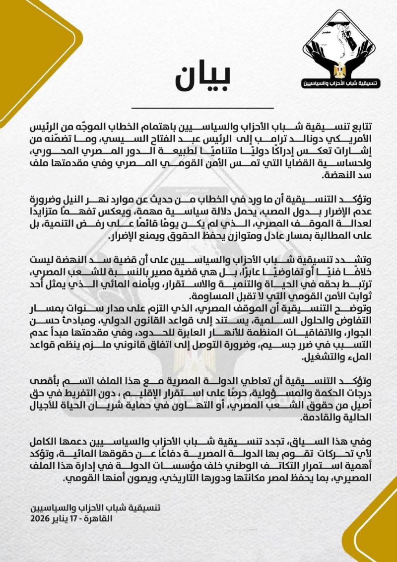 واختتم فرحات تصريحاته بالتأكيد على أن الرسالة الأمريكية تمثل فرصة مهمة للبناء عليها دبلوماسيًا، لدعم الجهود المصرية الرامية إلى التوصل لاتفاق قانوني ملزم يحقق المصالح المشتركة، ويحفظ شريان الحياة للشعب المصري، ويصون حقوق الأجيال القادمة، مجددًا دعمه الكامل للقيادة السياسية في إدارة هذا الملف المصيري بحكمة واقتدار.