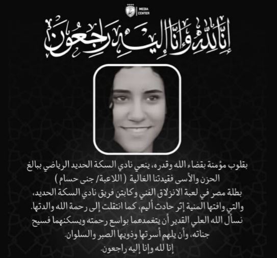 وفاة اللاعبة جنى حسام ووالدتها في حادث أليم