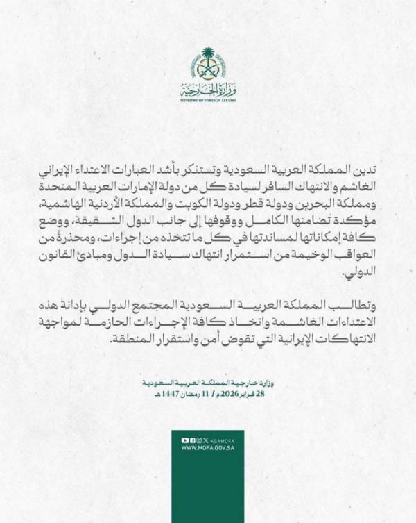 عاجل /مصر تدعو إلى إطلاق حوار عربي جاد حول الترتيبات الأمنية لمرحلة ما بعد الحرب في الشرق الأوسط